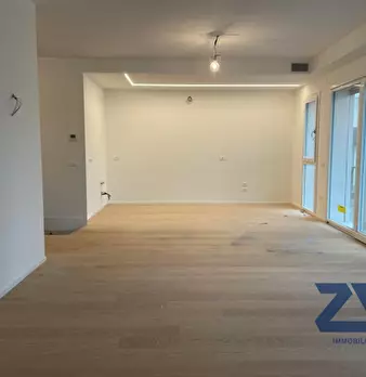 L'appartamento al piano terra, distribuito su 144mq commerciali, si compone da un ingresso che si affaccia sulla zona giorno formata dal salotto in open-space con la cucina e un piccolo ripostiglio, le grandi vetrate presenti, che danno sul giardino privato, garantiscono luminosità a tutte le ore del giorno.