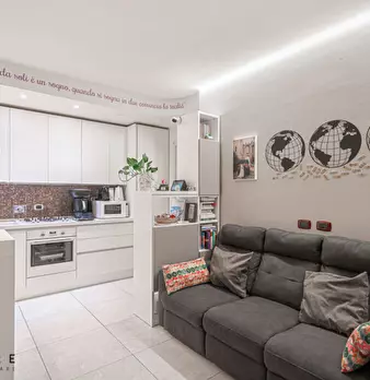 CARATTERISTICHE: l'immobile, frutto di completo rifacimento sia negli interni che a livello condominiale del 2018, dispone di: pavimenti in gres porcellanato, porte in legno, finestre in vetrocamera in pvc, porta blindata, travi a vista in legno bianche, aria condizionata e riscaldamento autonomo. Rivestimenti di bagno e cucina in pietra effetto marmo. Impianti a norma.