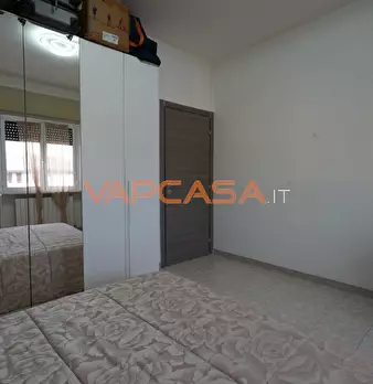 Descrizione: abitazione di tipo economico (A/3) di circa 146 mq complessivi (SLP 135 mq; superficie equivalente 138,63 mq). Accesso da vano scale condominiale; ingresso con ripostiglio, ampio soggiorno/pranzo con angolo cottura, due disimpegni, bagno, due camere e balcone sulla zona giorno (mq 11). Pavimenti in gres nella zona giorno, laminato nelle camere; bagno e angolo cottura rivestiti in ceramica.