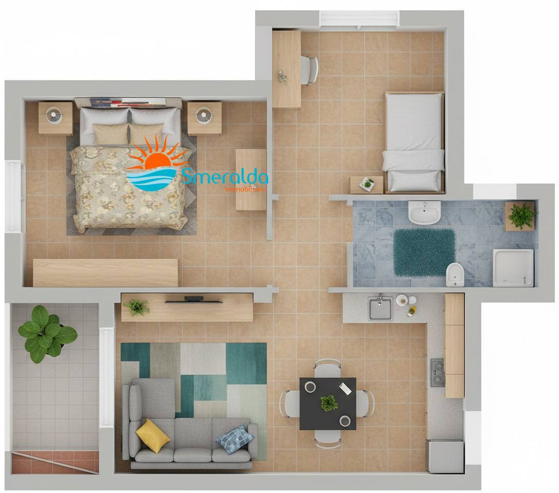 L'appartamento, di 64 mq, è caratterizzato da una splendida luminosità naturale in ogni ambiente. La zona giorno, con angolo cottura moderno, si affaccia su una veranda coperta, perfetta per i tuoi momenti di relax. La zona notte è composta da una confortevole camera matrimoniale e da una preziosa cameretta, ideale per accogliere il tuo bambino o per essere utilizzata come studio.