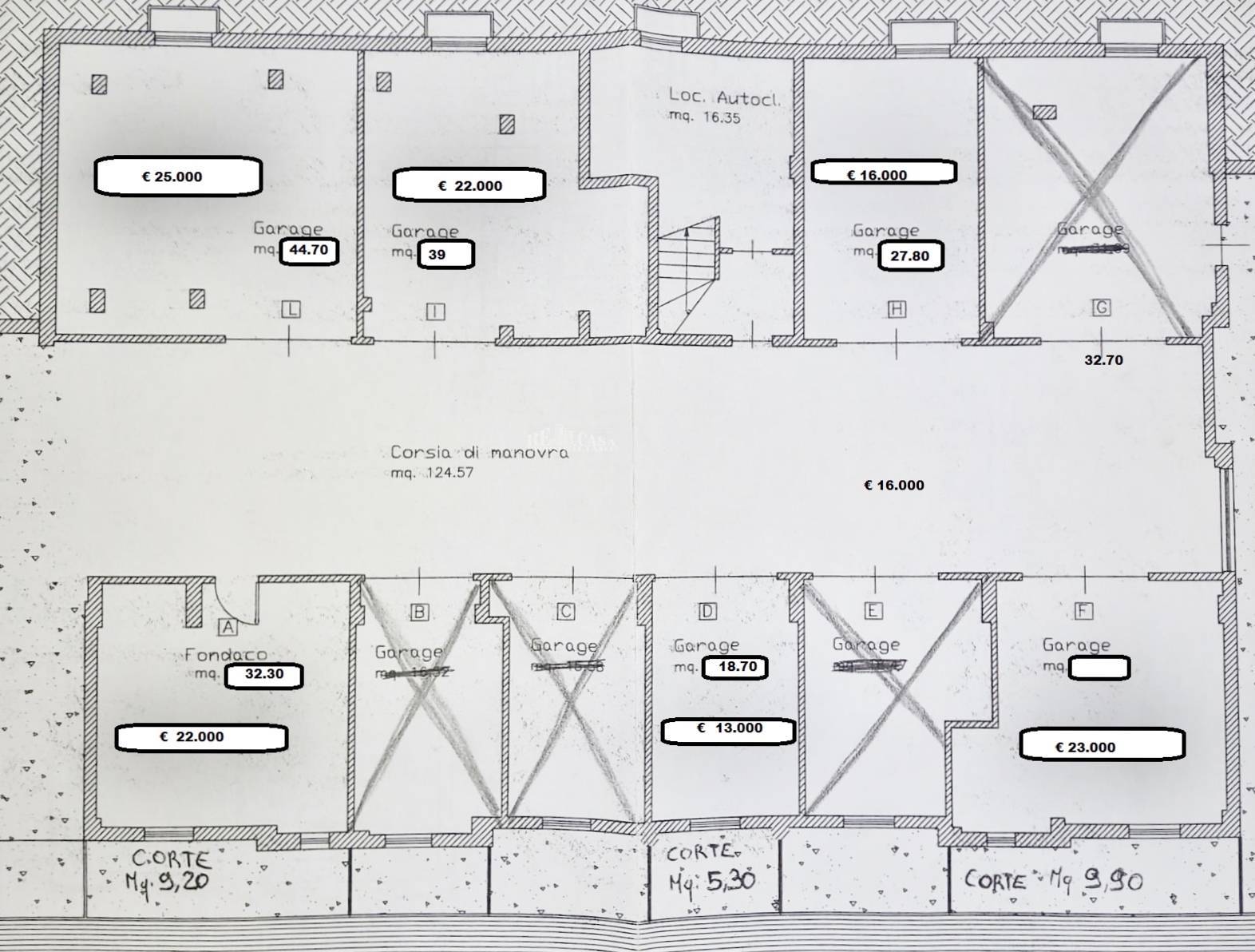 Disponibili al piano terra garage diverse metrature e posti auto.