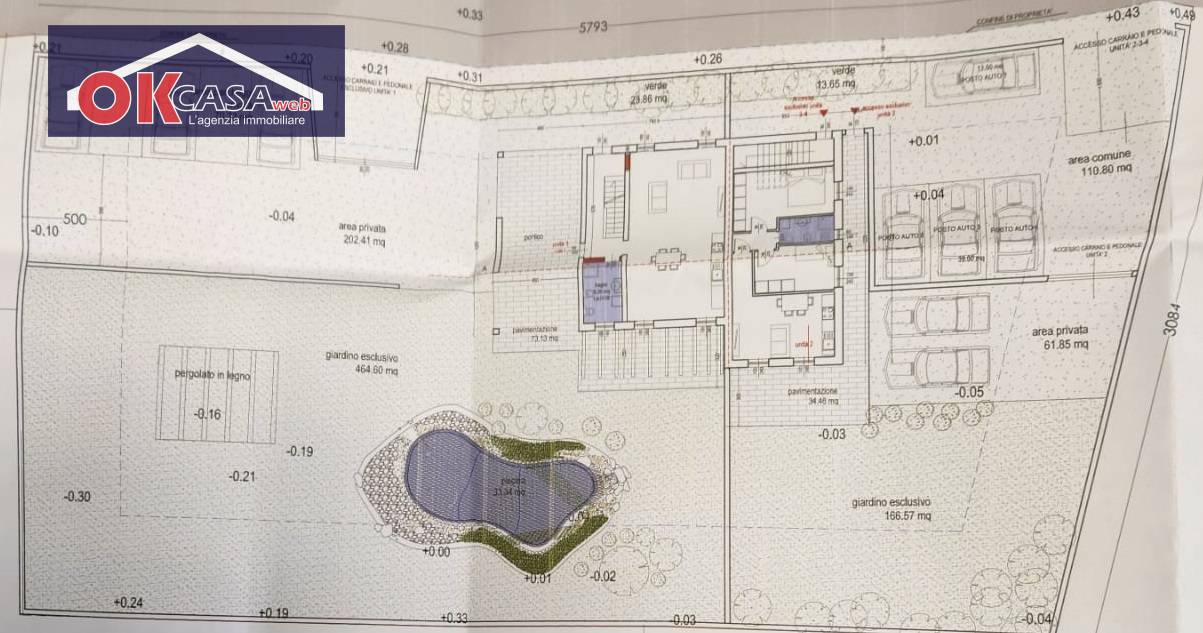 In posizione strategica immerso nel verde, comodo a tutte le vie di comunicazione, complesso residenziale di nuova costruzione, composto da una Villa indipendente, 3 appartamenti, piscina e terreno coltivato ad ulivi.