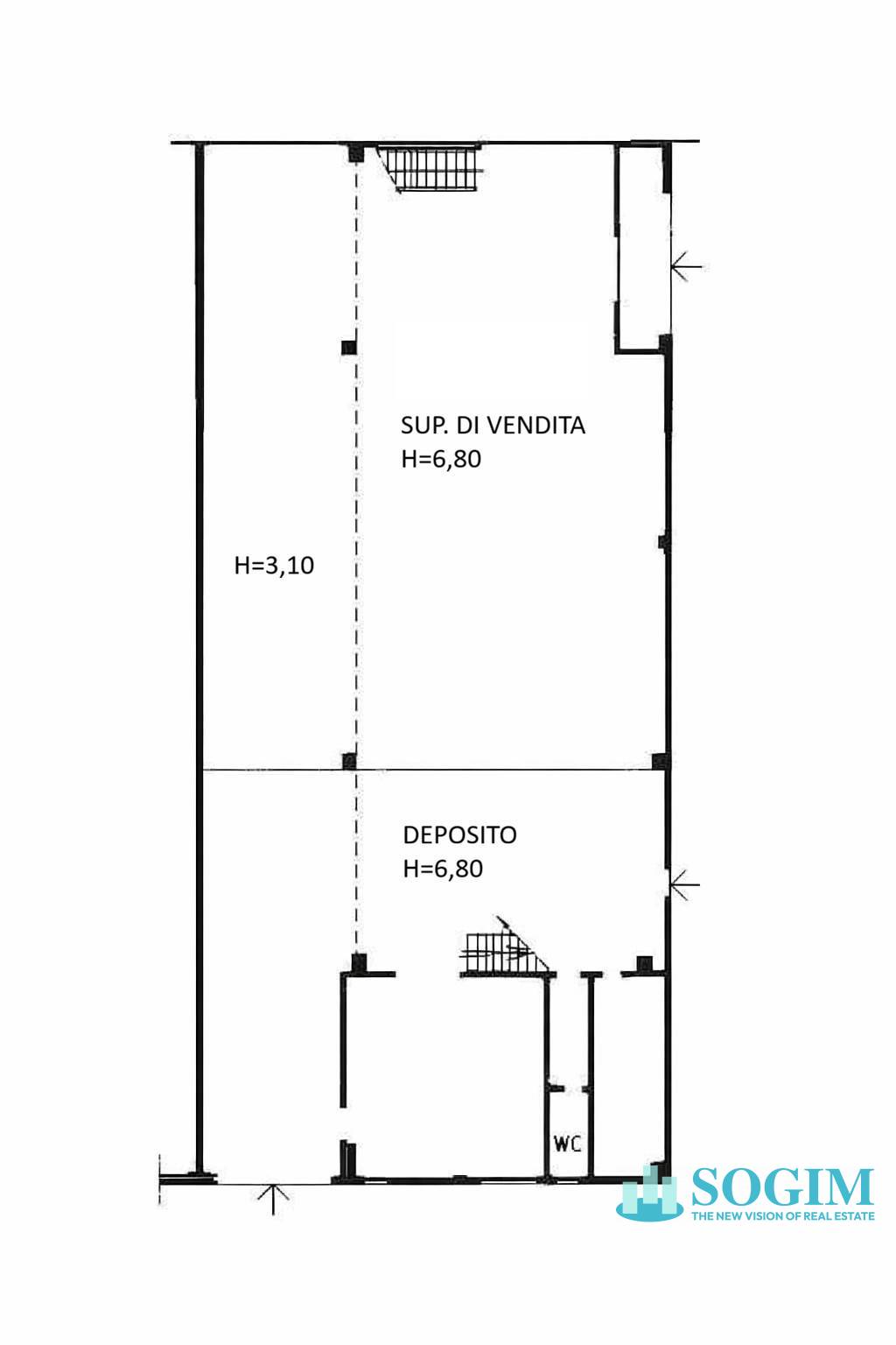 P.T. di mq 450 ca. comprensivi di superficie di vendita pari a mq 250 ed ufficio/servizi di mq 50 ca.