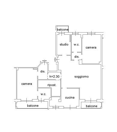 Appartamento di 140mq, dotato di DOPPIO INGRESSO, biesposto a sud-ovest e nord-est, composto da uno spazioso soggiorno, una cucina abitabile con spazio adibito ad angolo lavanderia, due camere da letto di comoda metratura, una terza stanza adibita a studio e sfruttabile come ulteriore cameretta singola, un pratico ripostiglio e doppi servizi entrambi finestrati. Il soggiorno e due delle tre camere hanno accesso ognuna al proprio rispettivo balcone. L'appartamento è stato ristrutturato nel 2005, è provvisto di impianto di allarme, e di impianto di climatizzazione caldo/freddo con split in soggiorno, cucina e camera matrimoniale, mentre negli altri ambienti con impianto canalizzato.