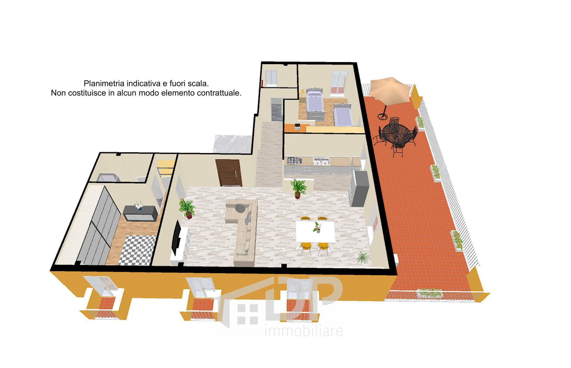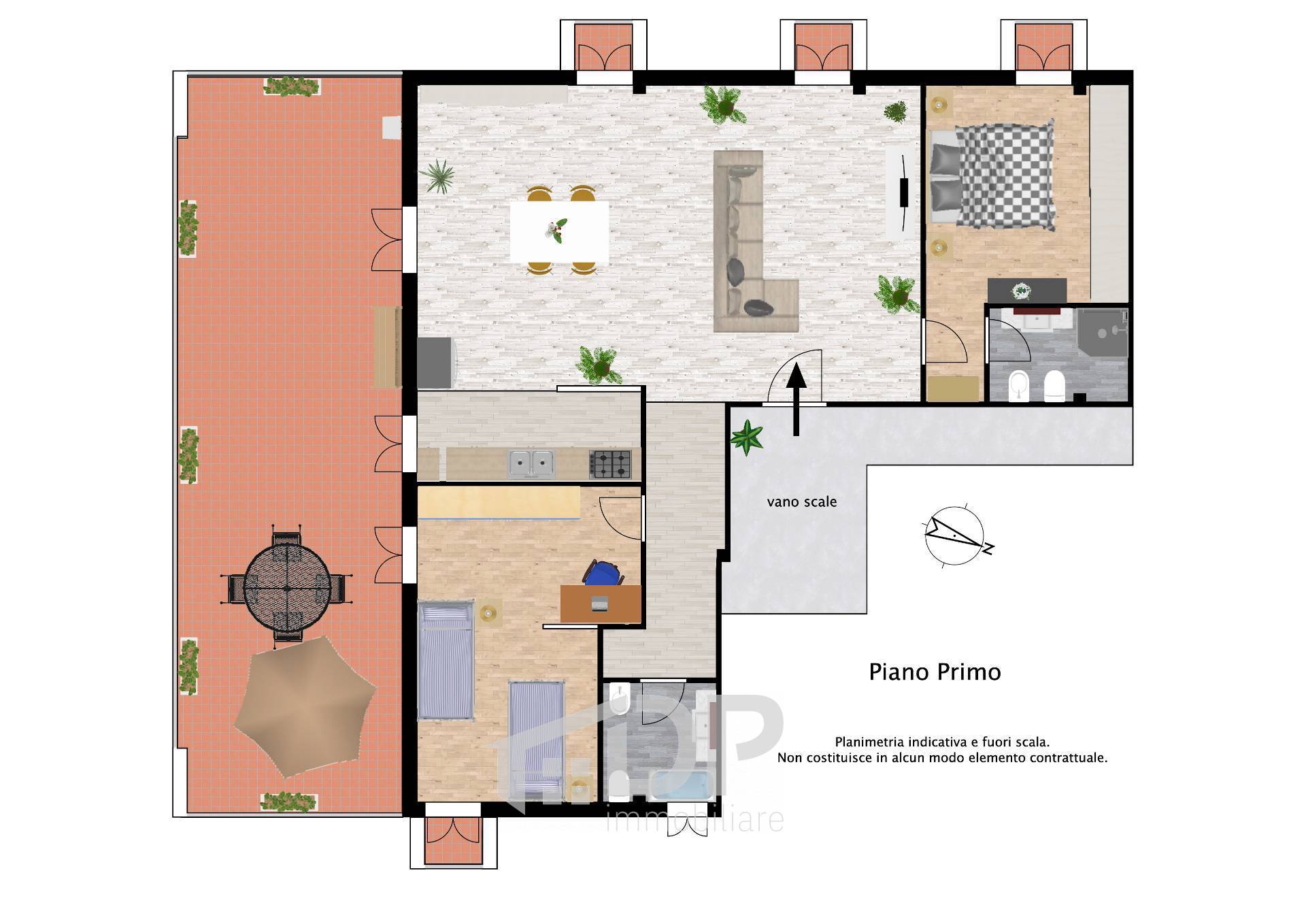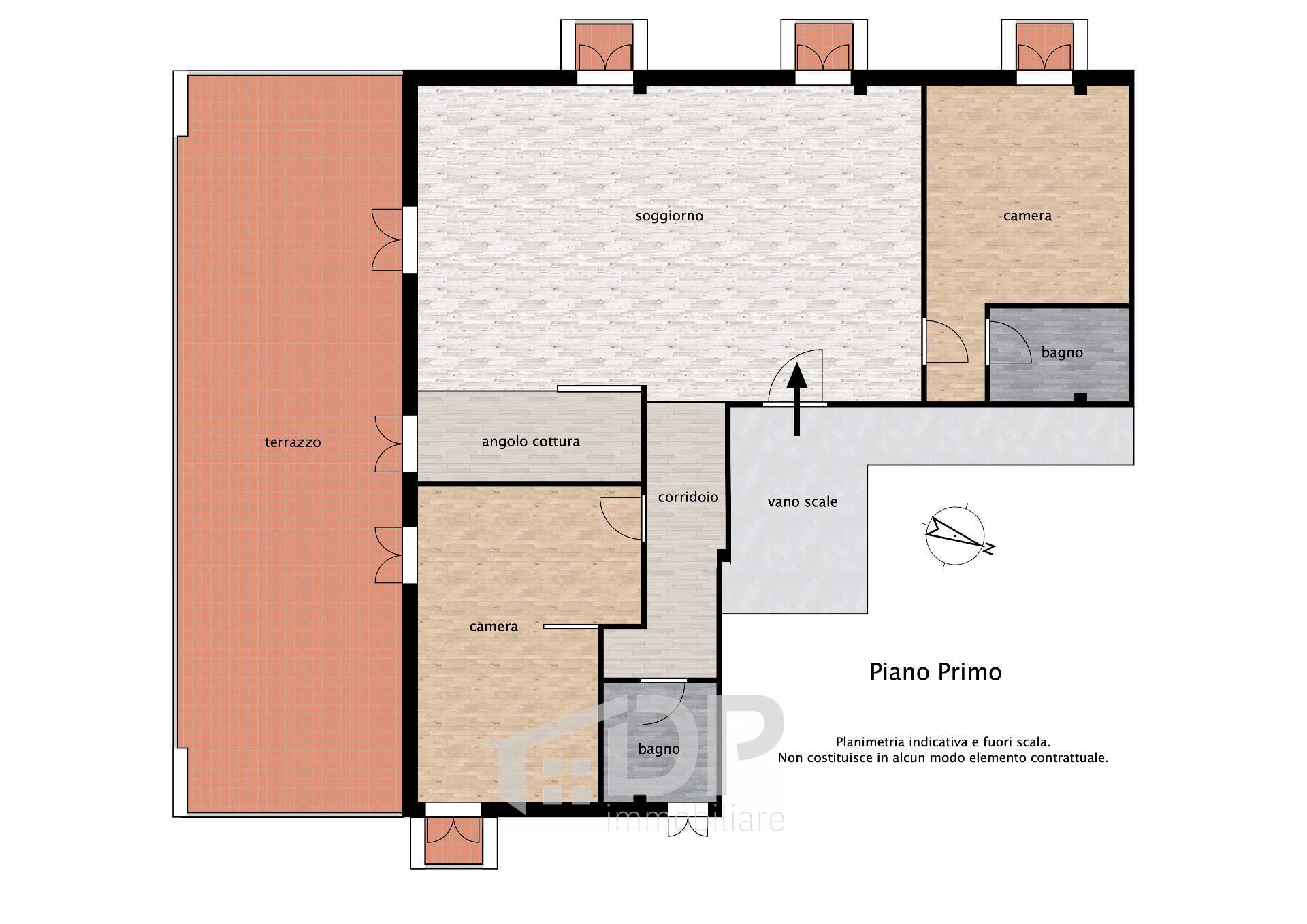 Ampio appartamento con terrazzo al primo piano.