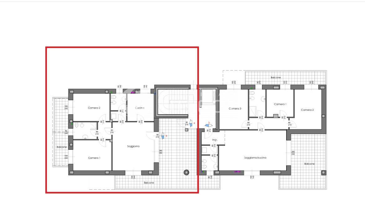 Rif. Appartamento 8 Appartamento al terzo piano di tre locali con doppi servizi 125 mq con 3 ter...