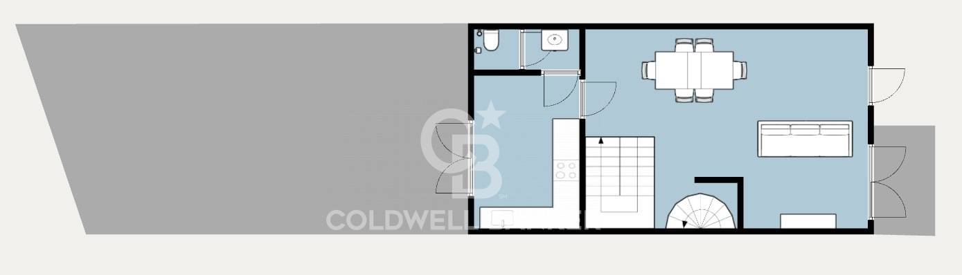 L’ingresso si apre su un ampio e luminoso soggiorno, dotato di terrazzo, perfetto per rilassarsi o pranzare all’aperto. Adiacente al soggiorno si trova una cucina abitabile, con accesso diretto al cortile privato, spazio ideale per momenti di convivialità o per godere della quiete estiva. Il piano principale è completato da un bagno di servizio e da un comodo ripostiglio.