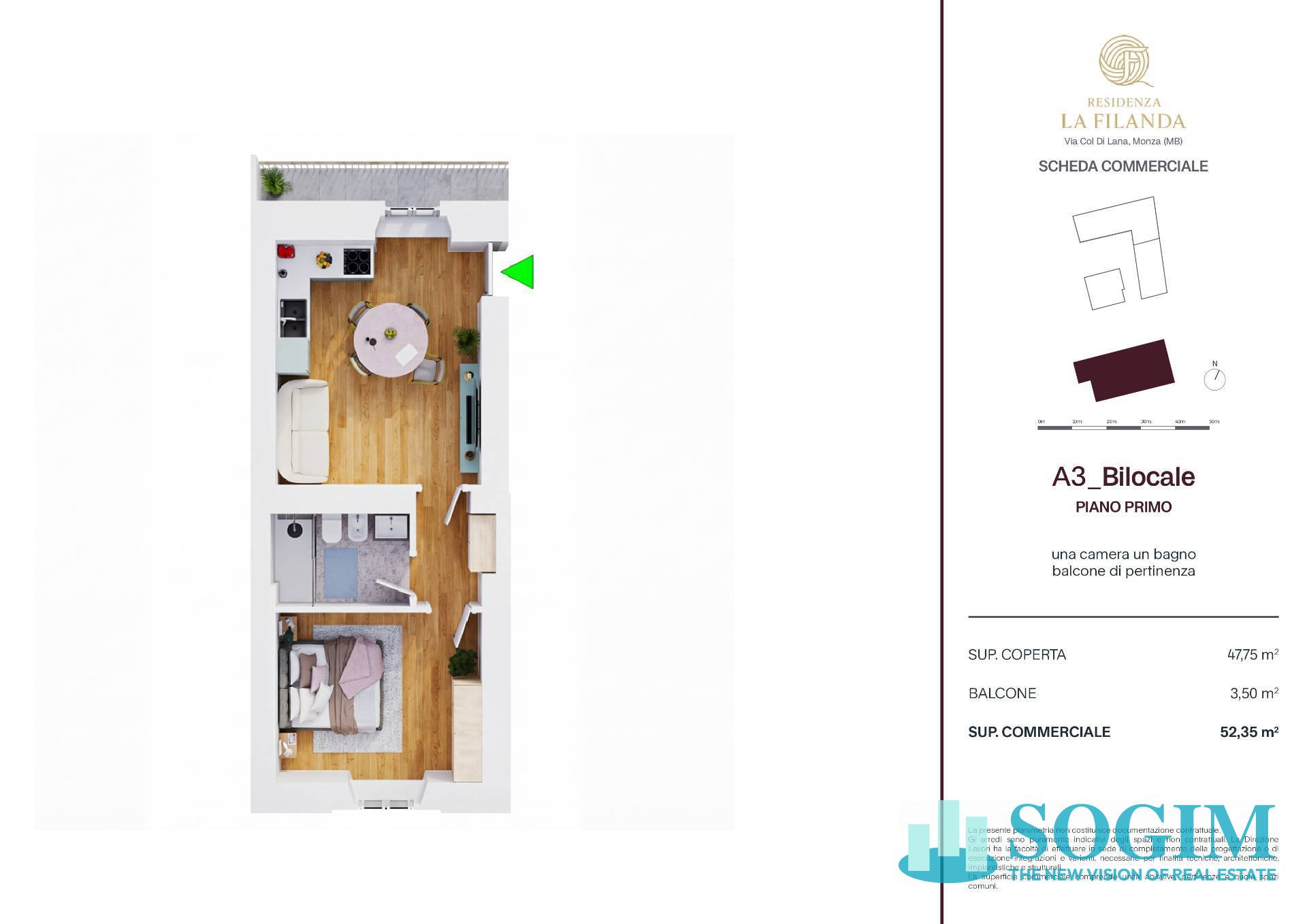 Al piano primo proponiamo bilocale con terrazzo così suddiviso: