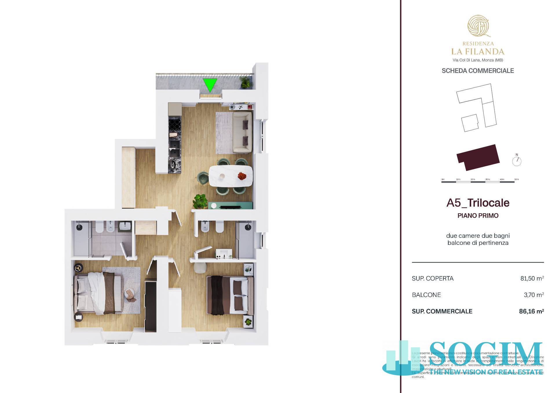 La distribuzione è funzionale e lineare, con una netta separazione tra zona giorno e zona notte, ideale per una vita comoda e moderna.