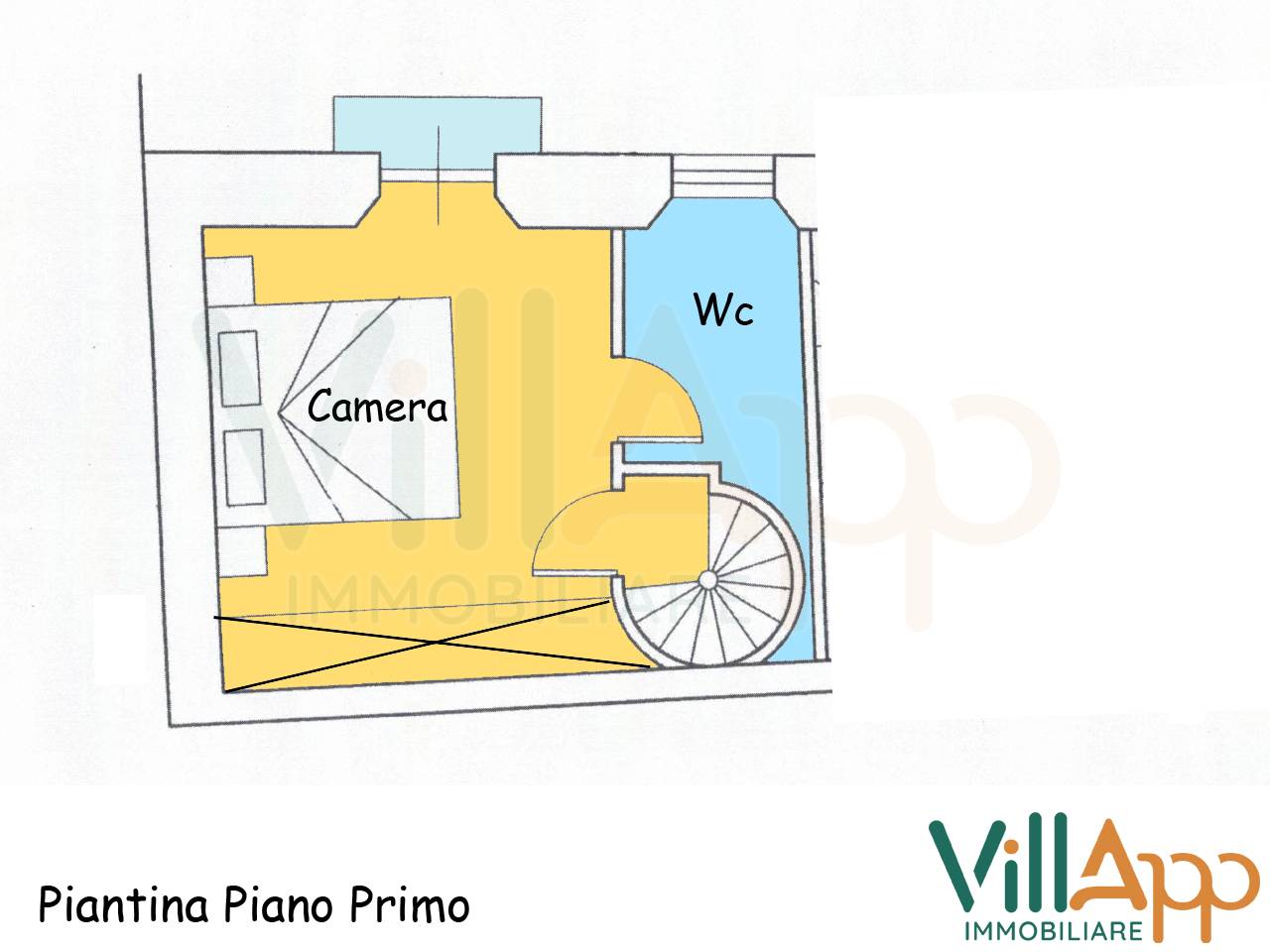 Piano Primo: Camera matrimoniale con Balconcino e Bagno con Doccia.