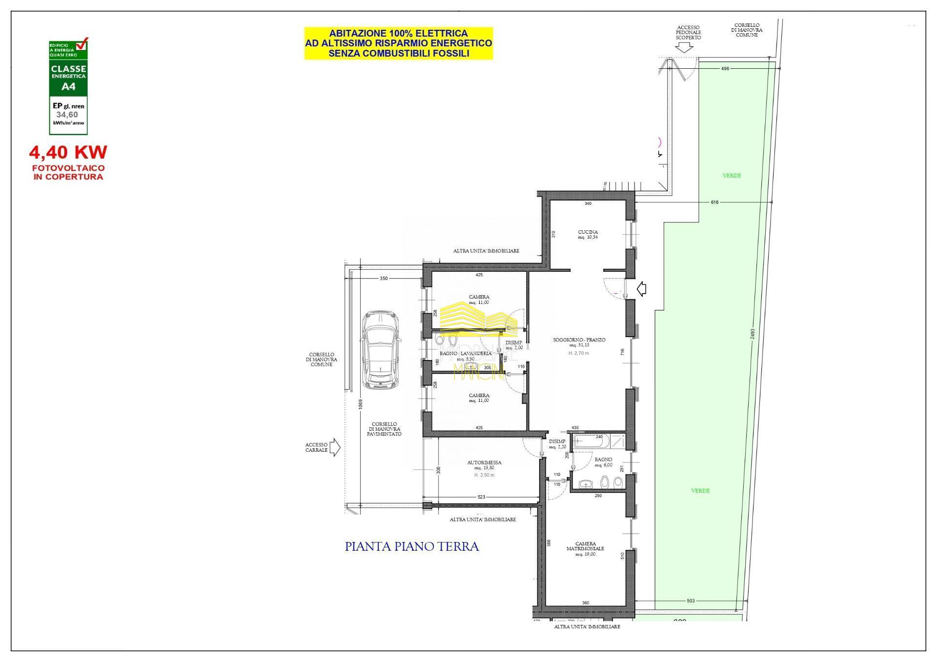 Accessoriata di impianto fotovoltaico ampliabile, pompa di calore già fornita con predisposizione climatizzazione estiva, riscaldamento a pavimento, predisposizione sistema di allarme.