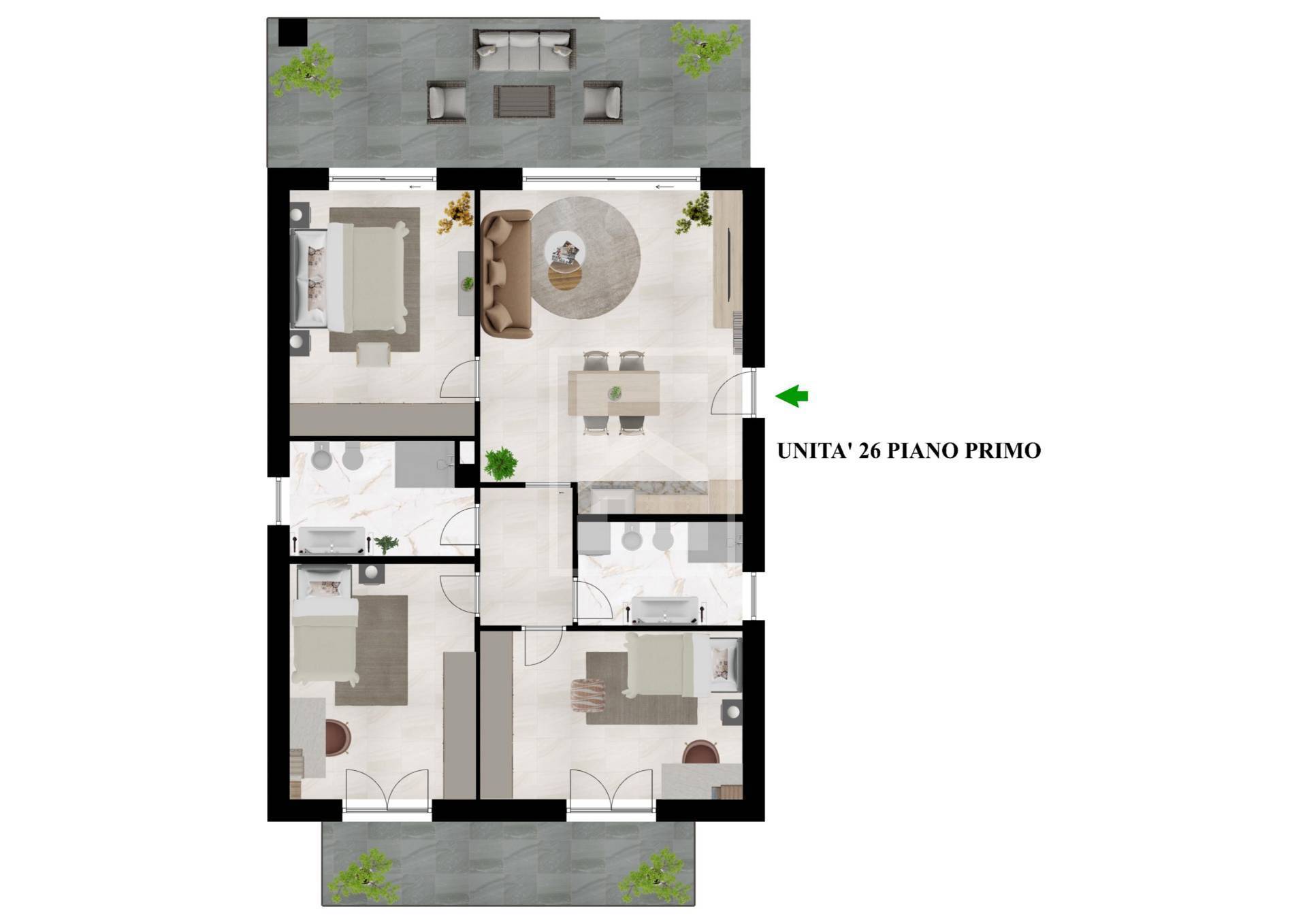 Appartamento n°26: primo piano, appartamento quadrilocale composto da ampio soggiorno, tre camere e doppi servizi, oltre ad ampio terrazzo vista lago. Box singolo, doppio o triplo acquistabile separatamente.
