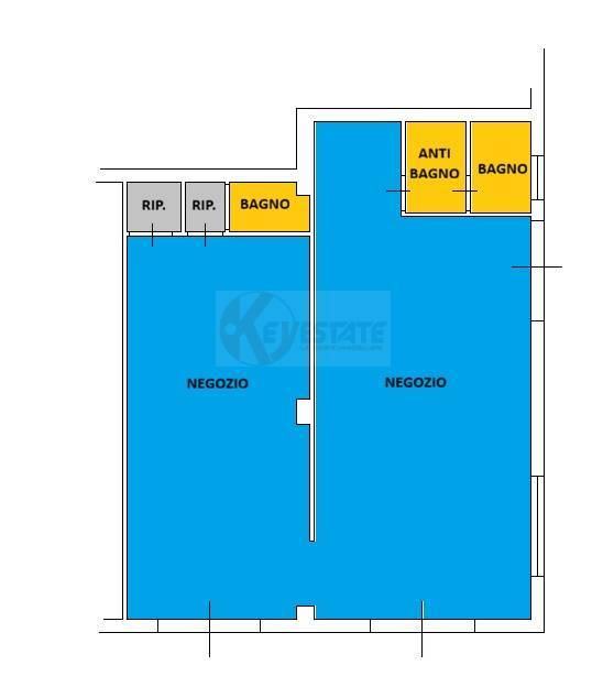 L'immobile è dotato di due ambienti inizialmente indipendenti, in seguiti uniti in un unico locale commerciale.