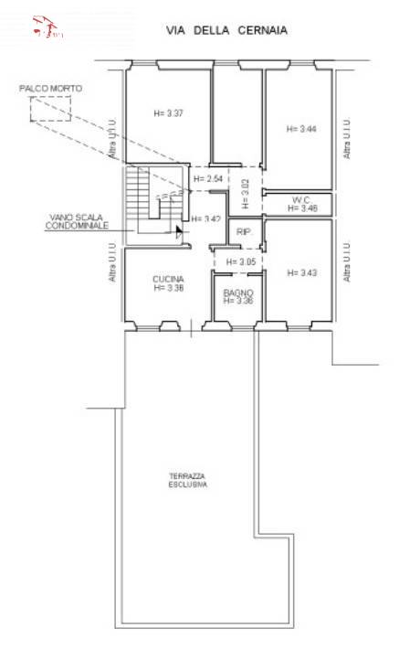 Firenze STATUTO, via della Cernaia, a tre minuti dalla tramvia, in quartiere caratterizzato dalla presenza di piccoli esercizi commerciali, vendesi appartamento di mq.104 con terrazzo abitabile di mq.75 al primo piano senza ascensore di piccola palazzina in buone condizioni di manutenzione.