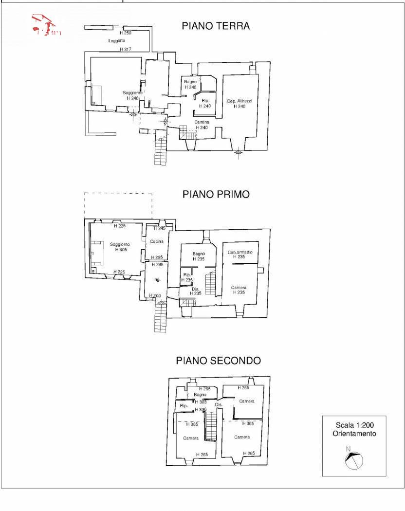 Ledificio principale, ristrutturato, deruralizzato, urbanisticamente e catastalmente conforme, è così composto: al piano terreno ci sono cucina, soggiorno con caminetto, bagno finestrato con doccia, lavanderia, ampia stanza multiuso, oltre a loggia con accesso esterno per ricovero attrezzi. Al primo piano collegato al piano terreno con scala interna, oltre a ingresso indipendente con scala esterna, troviamo soggiorno con grande camino, studio (ex cucina), ripostiglio, bagno finestrato con vasca, camera con spaziosa cabina armadio. Al secondo piano: 3 camere, ripostiglio, bagno finestrato con doccia.