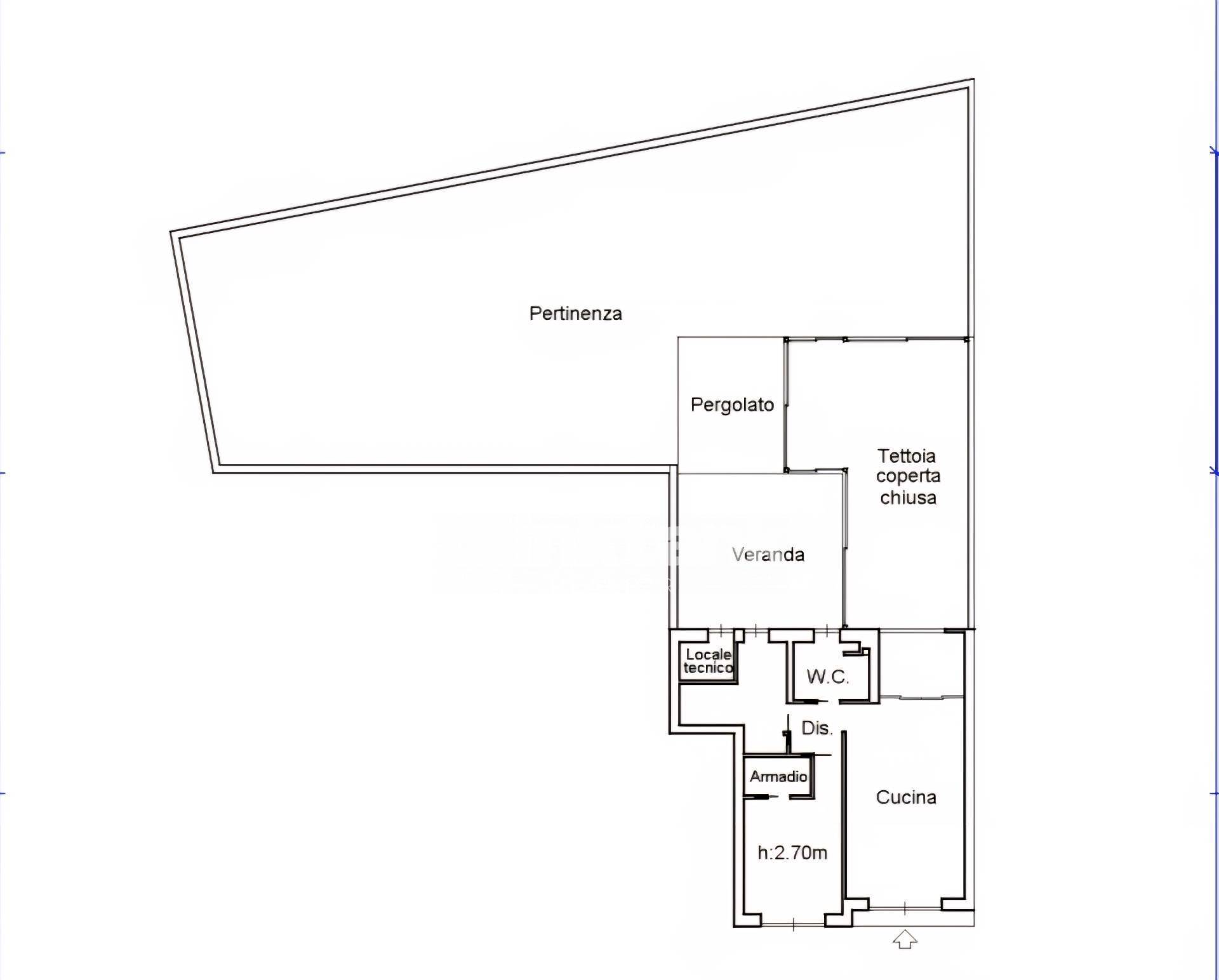 Con questa soluzione, la superficie complessiva dellimmobile passerebbe da 120 mq a circa 230 mq, con uno spazio esterno totale di circa 800 mq, ideale per la realizzazione di una piscina privata.