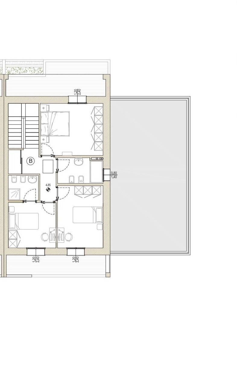 Salendo al primo piano troviamo una camera matrimoniale, due camere singole, due bagno e due terrazze