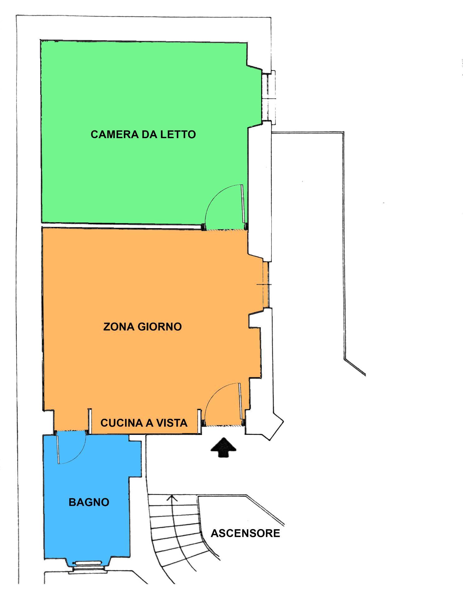 Grazie alla presenza di un ascensore, risulta comodamente accessibile. L'appartamento ha un taglio bilocale con una disposizione funzionale e ben distribuita tra i due locali che lo compongono.