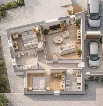 Lotto di terreno dove è possibile realizzare una bifamiliare monopiano NUOVA DA IMPRESA - CHIAVI IN MANO, progettata per offrire comfort, funzionalità e ambienti moderni, ideale per chi desidera una casa efficiente e pronta da personalizzare.