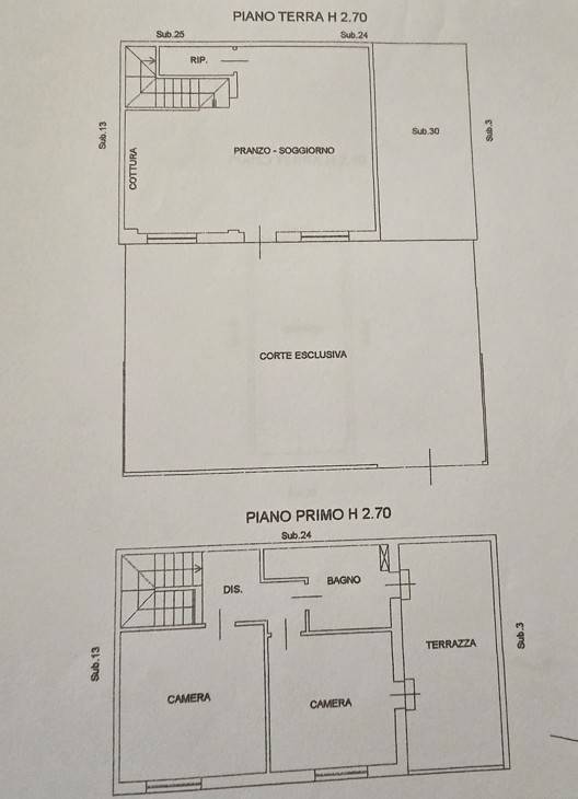 Al primo piano trovano spazio una camera matrimoniale, una camera singola e il bagno finestrato, completo di box doccia, con accesso diretto alla terrazza.
