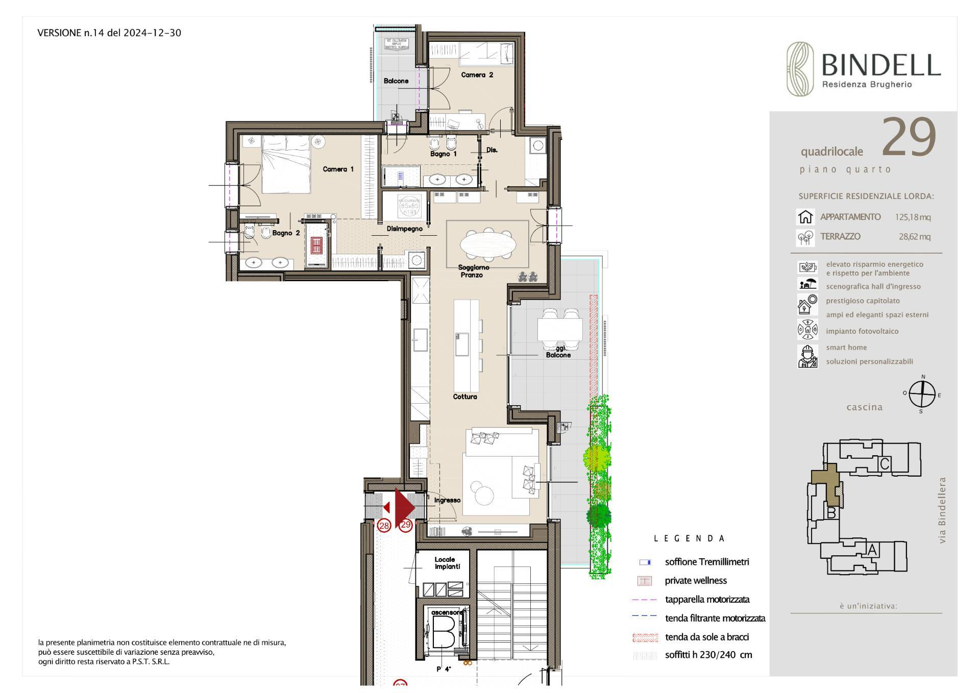 L'attenzione nello sviluppo della residenza è rivolta ad offrire abitazioni sostenibili con un'anima green e ricche di comfort. Appartamenti con certificazione energetica in classe A4, impianto fotovoltaico, ricarica per le auto elettriche nei box, impianto di domotica "BTicino" di ultima generazione, comandata da remoto comodamente dal tuo smartphone, e molto altro.