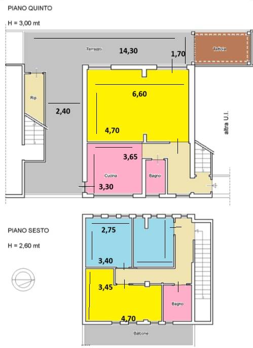 Attraverso le scale in marmo si accede al superattico dove troviamo un soggiorno con cucina a vista, 2 camere, corridoio, bagno e un balcone.