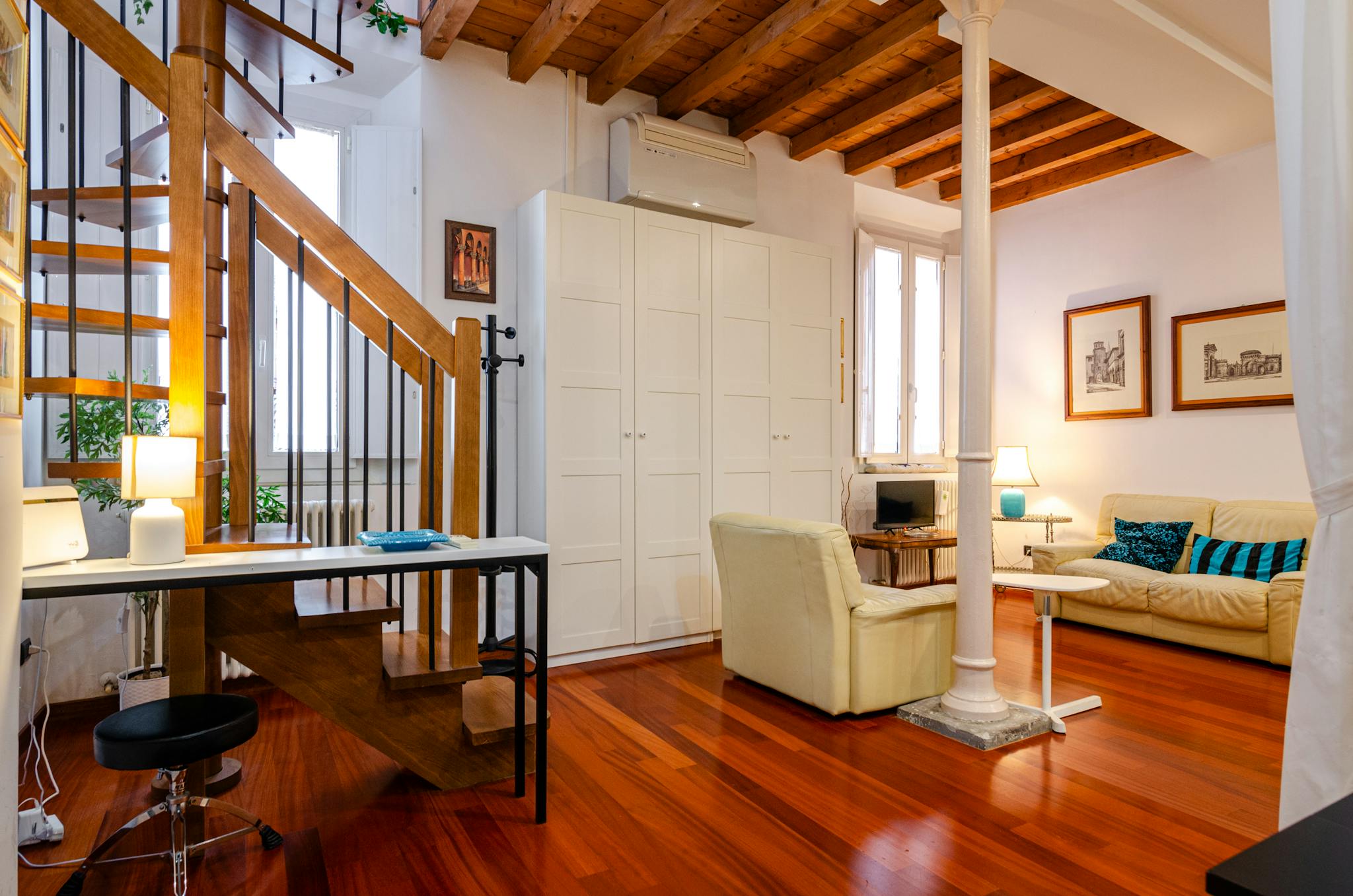 Composto da ingresso su zona giorno con tavolo da pranzo, cucina attrezzata,divano letto matrimoniale, soppalco con letto matrimoniale. Bagno con doccia. Aria condizionata e wifi illimitato. L'appartamento sarà dotato di asciugamani e lenzuola.