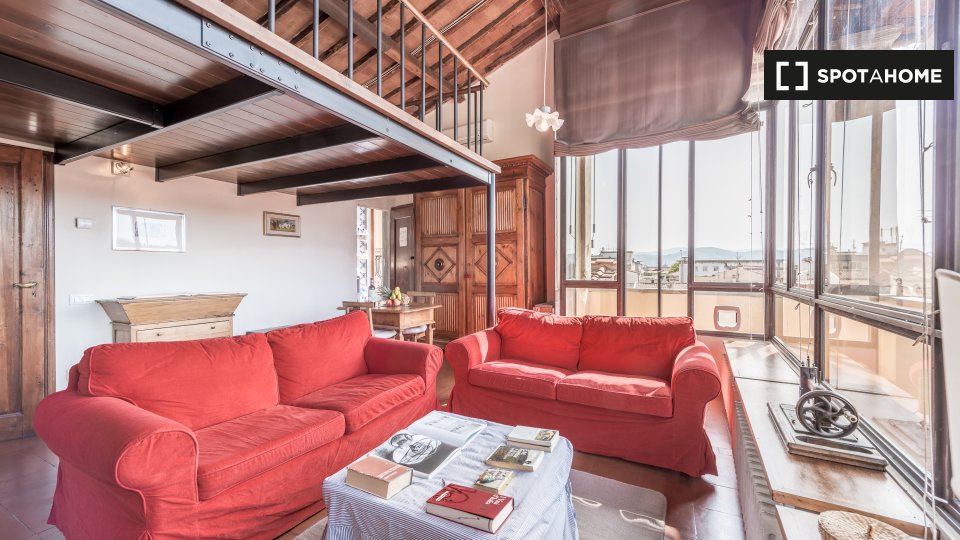 Welcome to Florence, in the heart of the historic centre, where this charming tourist rental apartment is located on the fifth floor of a building overlooking the charming via del Crocifisso, in the Santa Croce district.
