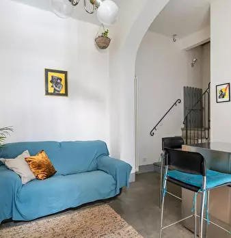 It is possible to sleep either downstairs in the blu sofa bed or upstairs in the mezzanine (140 cm high therefore one cannot stand).