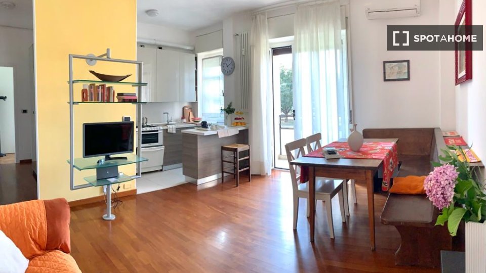 Bright apartment with kitchen, living area, bedroom with two single beds and bathroom. The area is served by various surface means, as well as by the metro M1 stop Bande Nere with which you can reach the city center in 15 minutes.