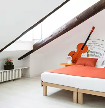 ✨Home of the Music✨ The attic of the Music, with bright dormer and wooden beams, consists of a...