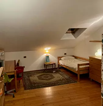 Camera collocata in mansarda con adiacente bagno quasi esclusivo, e con possibilità di studiare ...