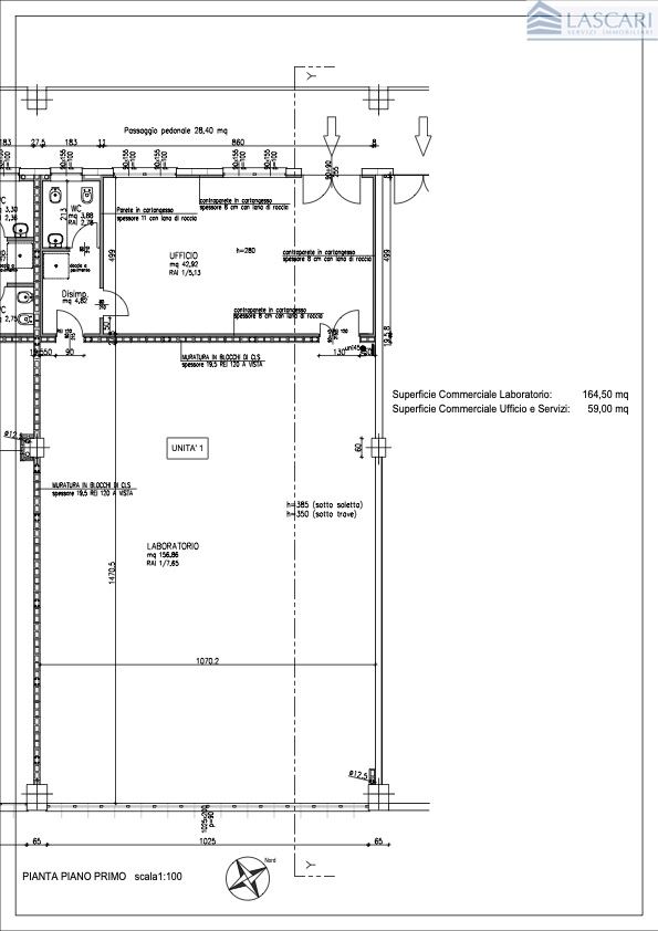 In complesso polifunzionale di recente costruzione ubicato a sud della città di Bergamo vicino al casello autostradale della A4, luminoso laboratorio posto al piano primo di mq 224 altezza utile mt. 3,50, composto da locale uso ufficio, ampio locale ad uso laboratorio e bagno. L'immobile è dotato di pavimentazione in piastrelle monocottura nella sola zona uffici, impianto elettrico-luci, impianto di riscaldamento-raffrescamento con pompa di calore e impianto d'allarme. Il complesso è dotato di due montacarichi e di una buona disponibilità di parcheggio libero ad uso pubblico. Vendita soggetta ad IVA.