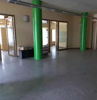 Composto da ampio ingresso vetrato con porte scorrevoli automatiche, ampio vano centrale arredato con varie postazioni, tre stanze ad uso ufficio, archivio, stanza con casseforti, due bagni e locale tecnico.