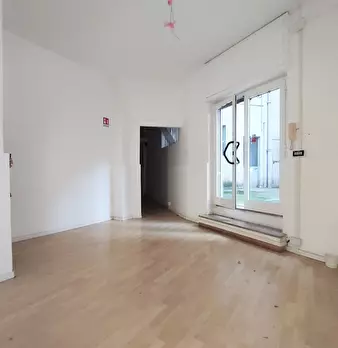 Magazzino con due serrande, composto da ampio locale angolare con finestre alte, bagno e ufficio, H soffitti mt. 3,50,