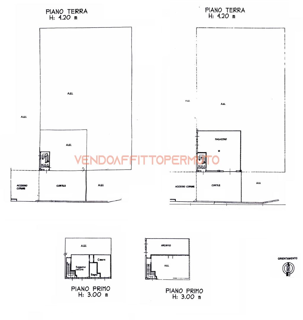 L’accesso avviene tramite cortile condiviso, dal quale si raggiunge la porzione ad uso esclusivo della proprietà. Qui è presente un portone di 4 metri di altezza che introduce al capannone di circa 250 mq, open space e non dotato di impianto di riscaldamento, perfetto come magazzino, laboratorio o deposito.