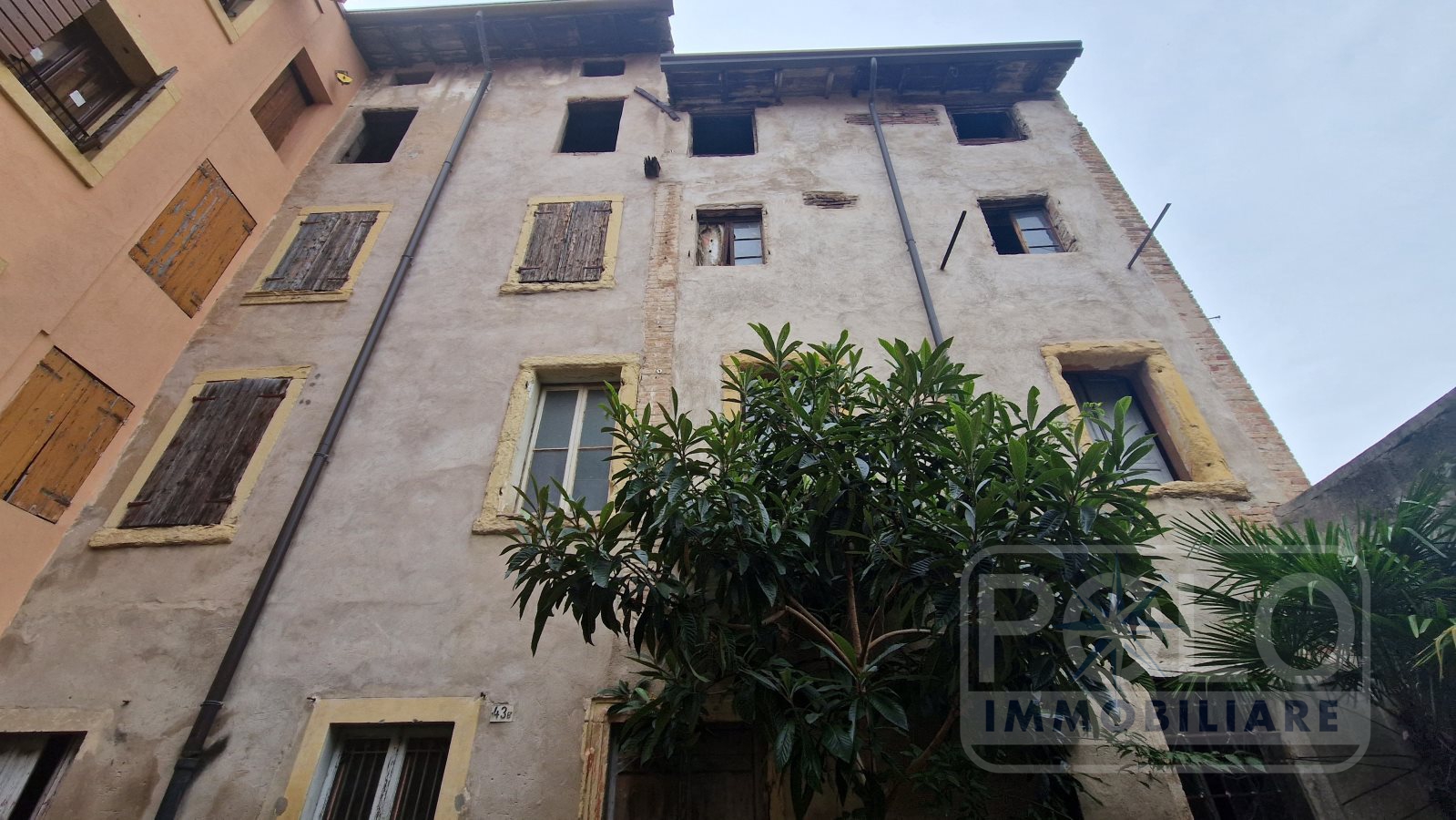 Al piano terra abbiamo due appartamenti, in particolare un trilocale ed un un bilocale, mentre al primo piano abbiamo un bilocale con una porzione di sottotetto di proprietà ed all'interno del cortile comune abbiamo pertinenziale una porzione di cortile privato adibito a posto auto ed un box.