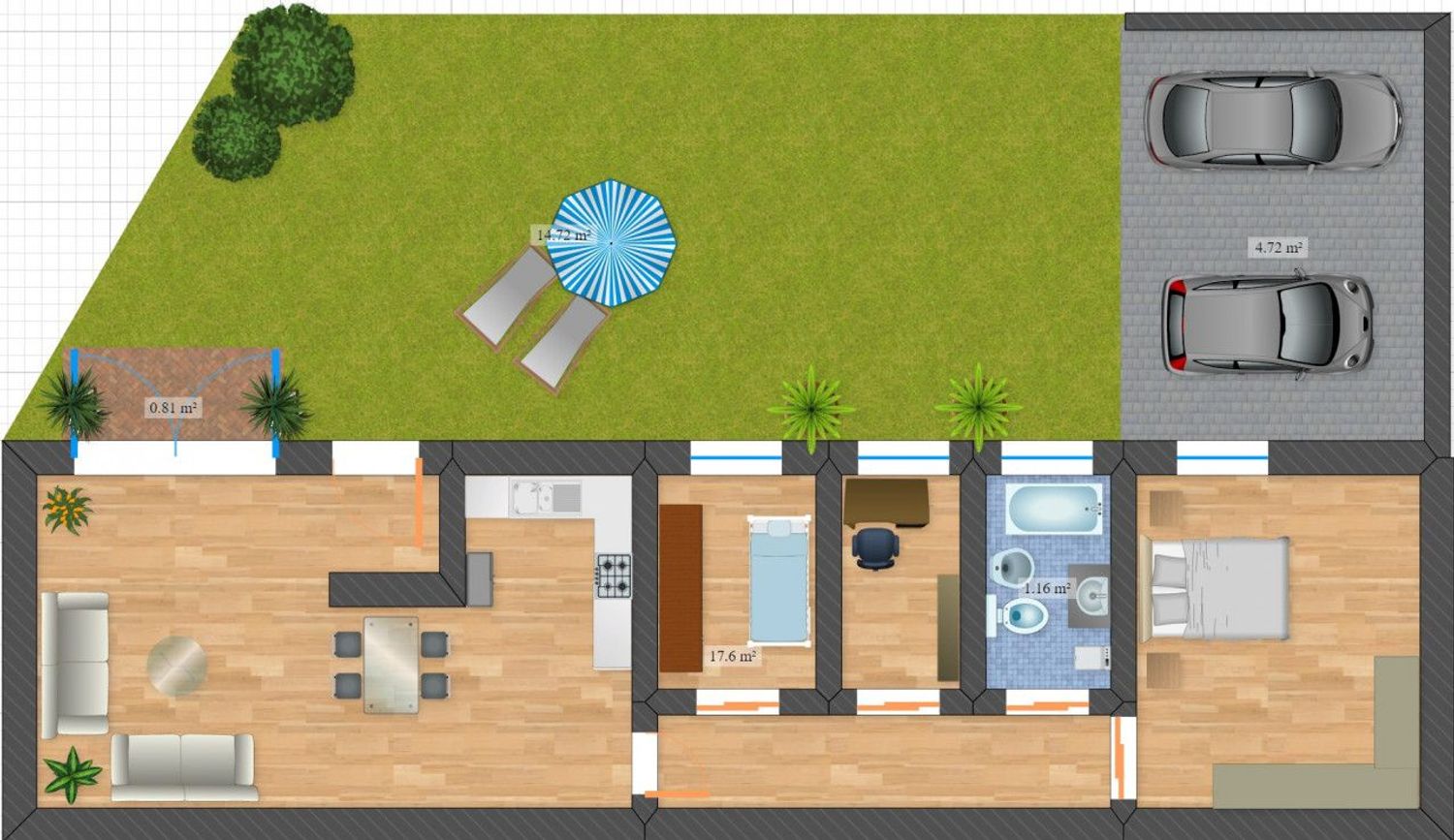 Esternamente troverete due posti auto coperti che assicurano comodità e protezione dai fenomeni atmosferici, mentre il giardino privato vi offrirà uno spazio ideale dove trascorrere piacevoli giornate all'aperto o creare il vostro angolo verde personale.