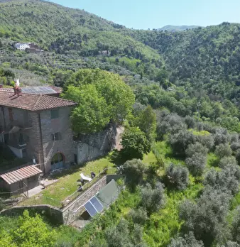 Impianti: riscaldamento a biomassa, 3 stufe, climatizzazione con 5 split, impianto di allarme, irrigazione automatica.