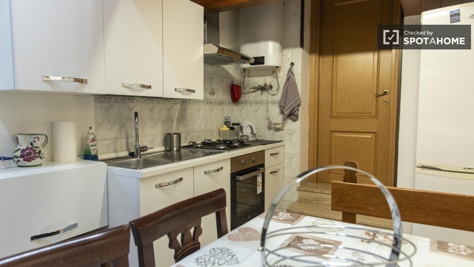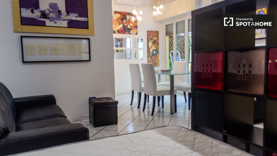 Benvenuti in questo monolocale completamente arredato situato a Giardinetti-Tor Vergata Zona Torrenova, Roma. Questa proprietà esterna è dotata di riscaldamento centralizzato, aria condizionata individuale e include tutte le utenze e il servizio di pulizia periodico. È consentito fumare. Inoltre, l'immobile dispone di un balcone e di una cucina completamente attrezzata con tutto il necessario per cucinare. Spotahome ha verificato personalmente questo immobile per garantirvi comfort e affidabilità.