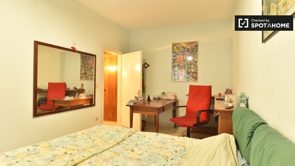 Questa camera condivisa in un appartamento con 2 camere da letto a Castel di Leva è completamente arredata e dispone di aria condizionata autonoma, riscaldamento a gas metano, balcone e cucina completamente attrezzata con lavastoviglie e forno. Non è consentito fumare e non sono ammessi animali. L'appartamento è stato verificato da Spotahome, che fornisce un annuncio verificato e affidabile.