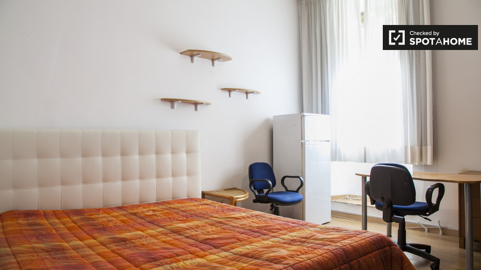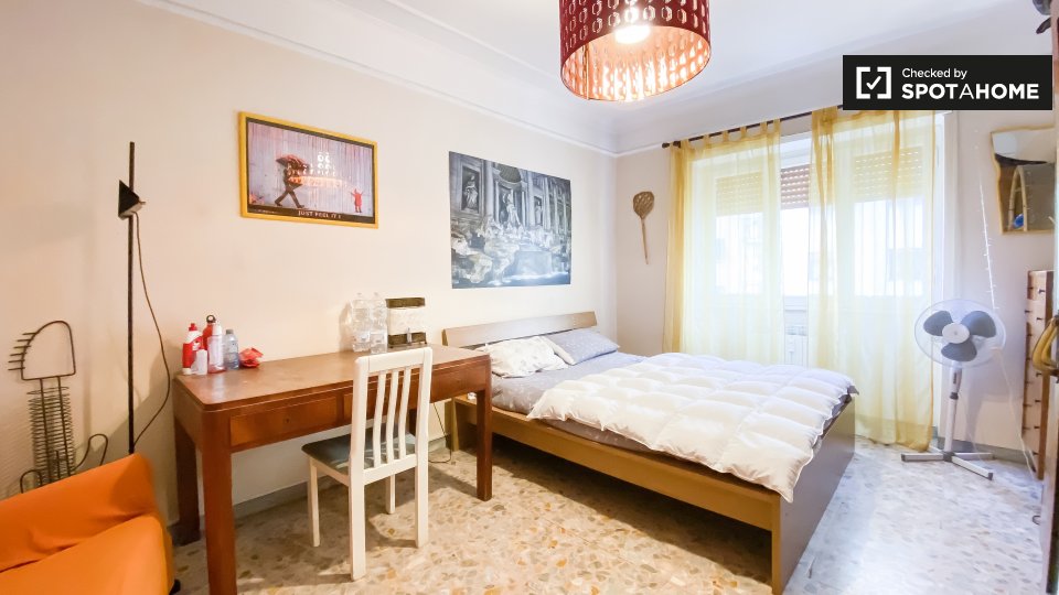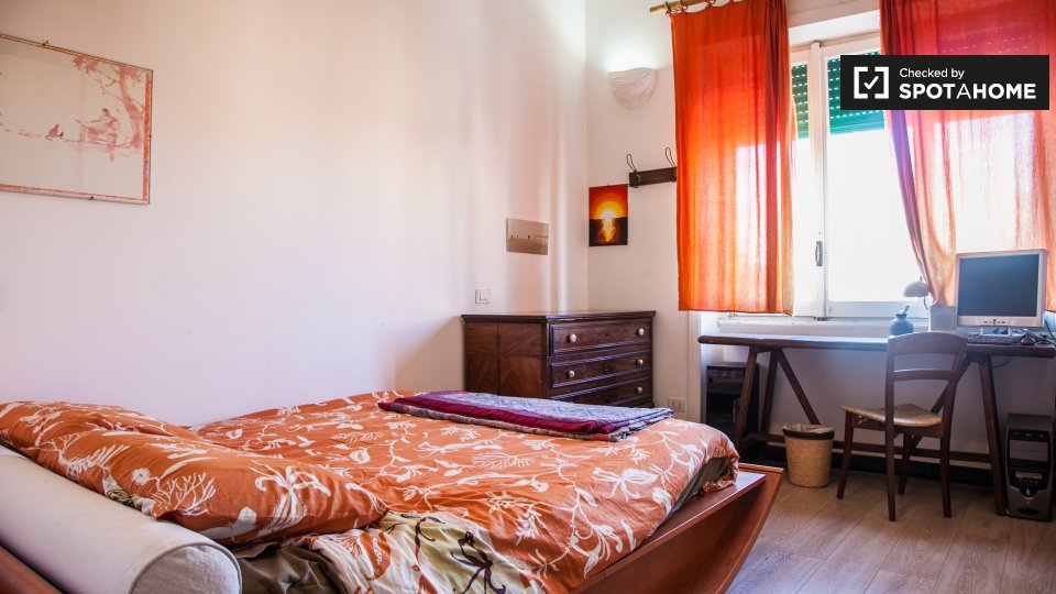 Vuoi goderti la vita al Pigneto, a Roma? Ti offriamo una stanza privata in un ampio appartamento condiviso con 3 camere da letto. L'immobile è completamente arredato e dispone di riscaldamento centralizzato, cucina attrezzata con forno, lavatrice in uno spazio comune e balcone per rilassarsi all'aperto. Ulteriori comfort, come il servizio di pulizia incluso, rendono questa opzione particolarmente interessante. L'appartamento è riservato alle donne. Tutte le utenze di acqua, elettricità, gas e Wi-Fi sono incluse nel prezzo di affitto.