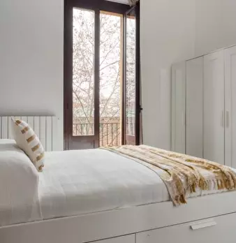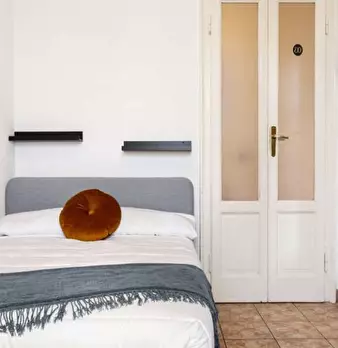Questa camera arredata in un appartamento condiviso con 3 camere da letto situato nel quartiere T...