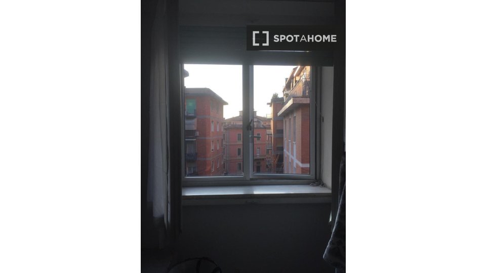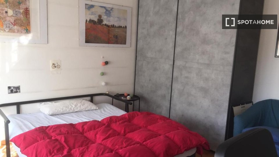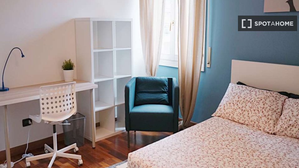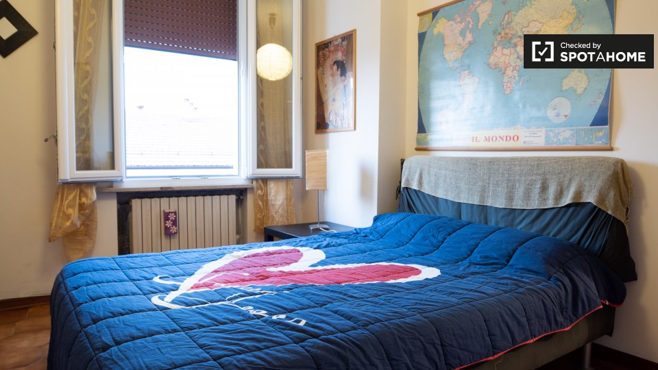Questa accogliente camera si trova in un appartamento condiviso con 6 camere da letto nel cuore d...