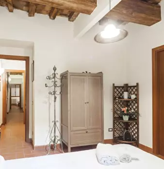 Situato al terzo piano di un palazzo tradizionale senza ascensore, l'appartamento conserva le caratteristiche originali tipiche dell'architettura toscana, come i pavimenti in cotto e le travi in legno a vista che conferiscono un'atmosfera calda e rustica all'ambiente.