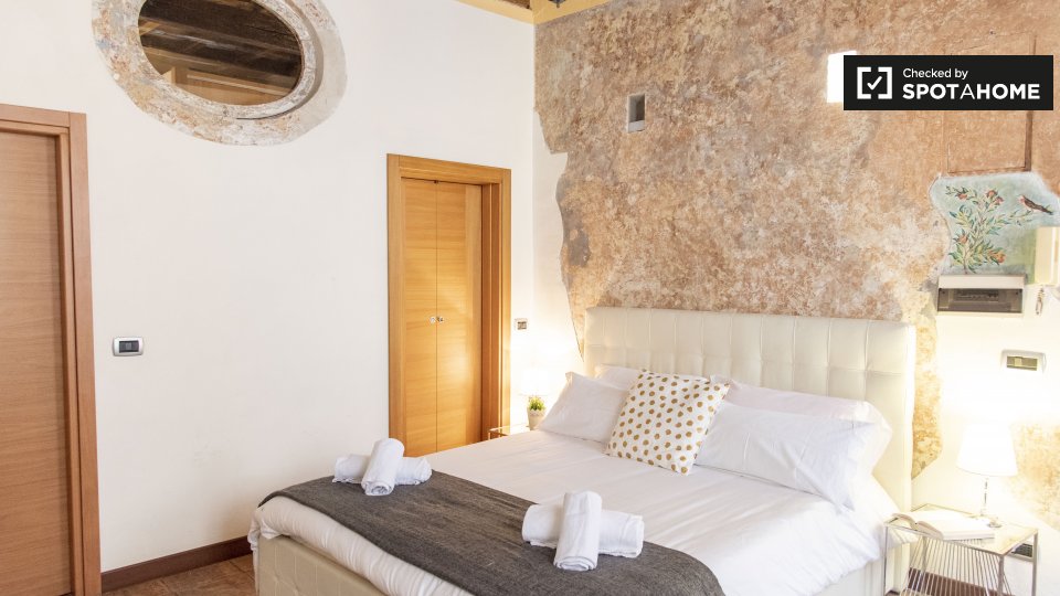 Questo appartamento con una camera da letto a Trastevere, Roma, è disponibile per l'affitto e offre i comfort essenziali. L'appartamento è stato verificato da Spotahome ed è completamente arredato. È dotato di aria condizionata centralizzata, lavatrice privata e cucina attrezzata. L'immobile dispone di balcone o terrazza ed è ideale per professionisti, coppie e studenti. Si applicano restrizioni, come il divieto di fumo e l'ammissione di animali domestici. Le bollette, tra cui elettricità, tassa comunale, riscaldamento, acqua e Wi-Fi, sono gestite separatamente.