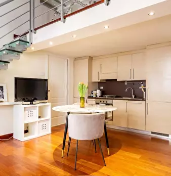 Un grazioso appartamento con 1 camera da letto con aria condizionata è disponibile in affitto a Sempione, proprio accanto allo splendido Parco Sempione. La struttura dispone di un elegante soggiorno, dove potrete rilassarvi sul comodo divano e guardare la TV, o servire un delizioso pasto al delizioso tavolo da pranzo. La cucina ha tutto l'essenziale, tra cui una stufa a 4 fuochi, un grande frigo-congelatore e un forno. La camera da letto è spaziosa, con un grande letto matrimoniale, una scrivania, un altro televisore e aria condizionata. Nel bagno, che ha piastrelle rosse uniche, troverete una grande vasca da bagno, un portasciugamani riscaldato e una lavatrice.