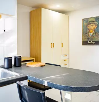 - Il letto è proprio accanto alla zona cucina, ma è perfetto per gli spuntini di mezzanotte.