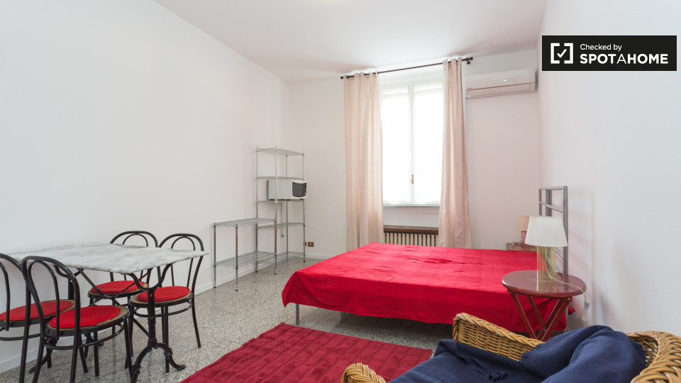 Questo monolocale splendidamente arredato è ora disponibile per l'affitto a Sarpi, Milano. L'immobile si affaccia sull'esterno, dispone di aria condizionata individuale, riscaldamento centralizzato e balcone o terrazza, rendendolo un alloggio confortevole e piacevole. È consentito fumare e gli animali domestici sono benvenuti. Le utenze, tra cui elettricità, acqua, gas, riscaldamento, Wi-Fi e servizio di pulizia, sono incluse nel prezzo di affitto. Verificato da Spotahome per la vostra sicurezza.