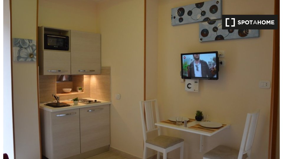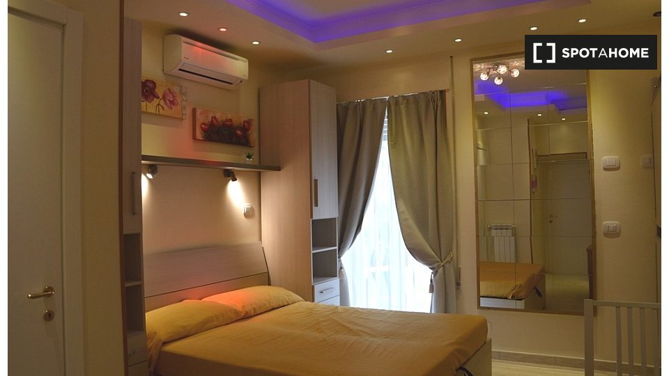 Camere completamente attrezzate con bagno privato e cucina individuale in affitto in un appartamento arredato con 5 camere da letto in Via Vetulonia. La proprietà è dotata di aria condizionata, TV e riscaldamento in ciascuna delle stanze.